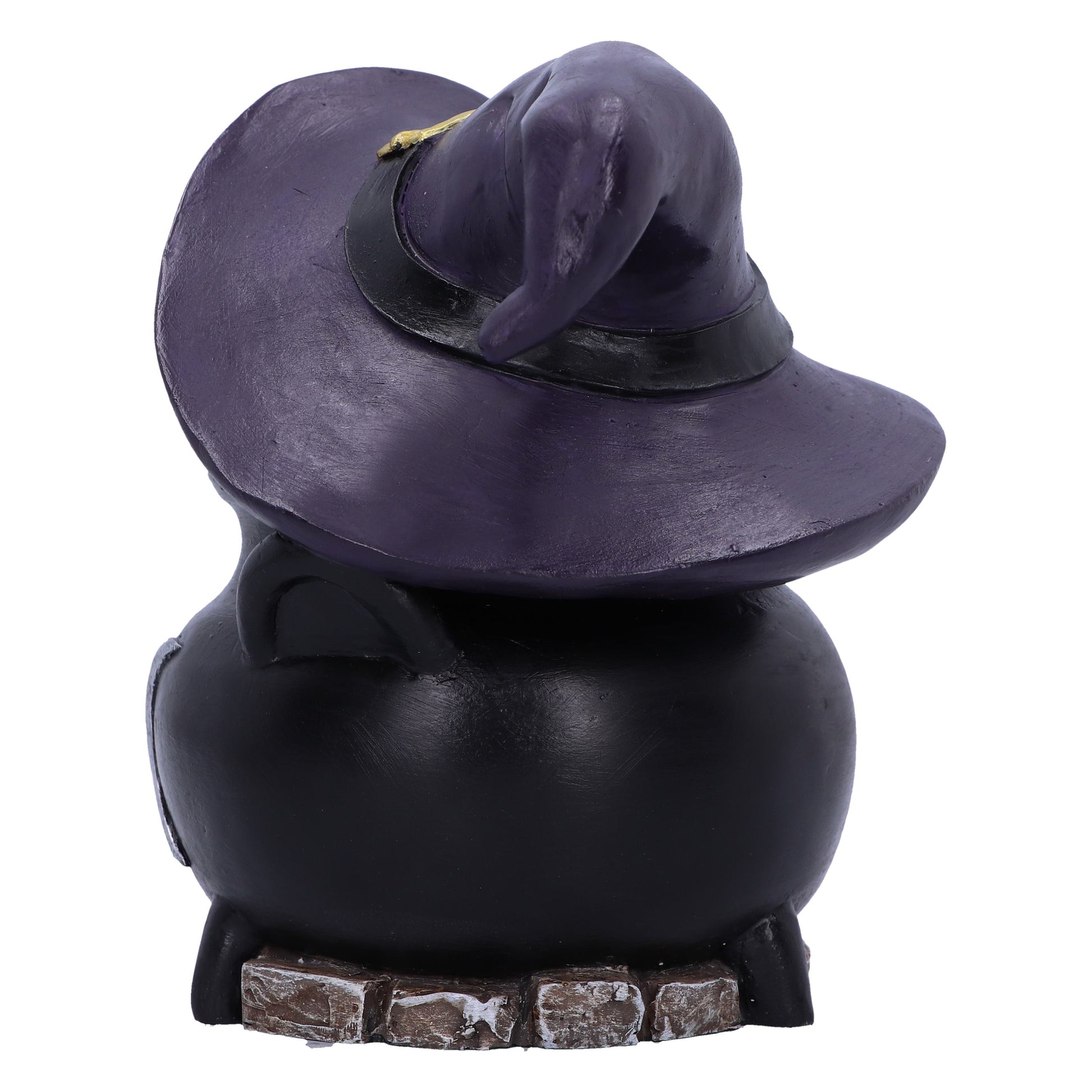 Introducing 'Peek a Brew' a bewitching figurine that merges charm and mysticism. A curious cat's head emerges from a cauldron adorned with silver pentagram, creating an enchanting tableau. Watch in awe as the cat's eyes come alive with LED magic, illuminating in captivating hues. Cast in finest resin before being expertly hand-painted, this figurine is the perfect addition to any gothic or feline collection.